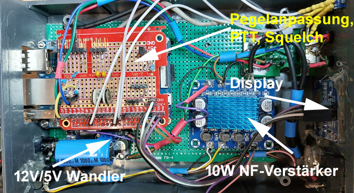 Pegelanpassung und PTT oder Squelchsteuerung erfolgt über eine Adaperplatine.